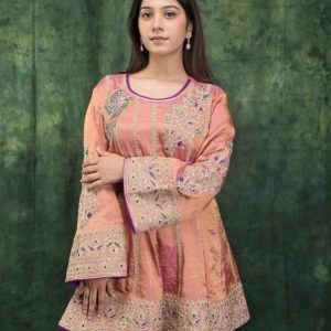 A stylish fusion of traditional artistry and modern silhouette.